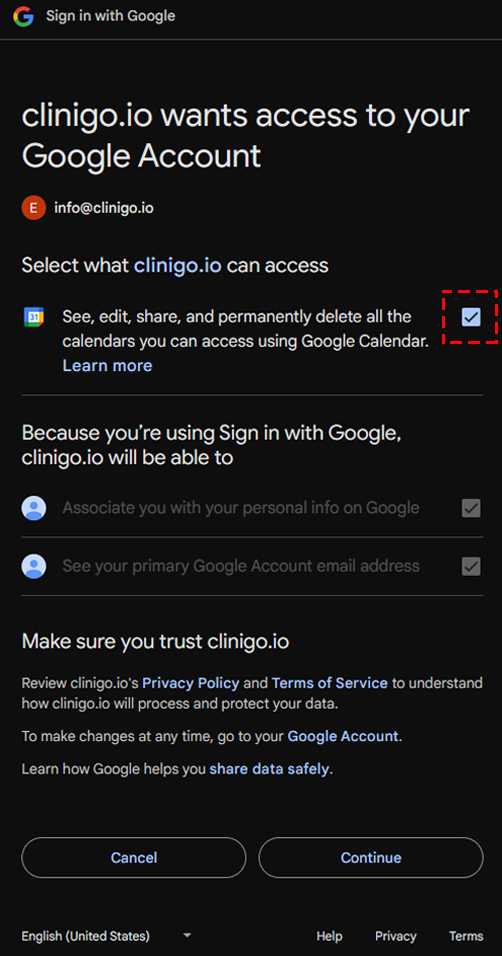 Step 4: Grant the app permissions to connect your Google Calendar